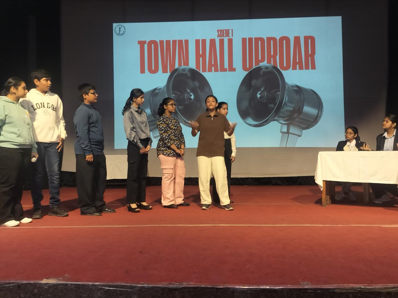 The judges for the English play were Ms. Nandini Mehta and Mrs. Uma Vaidya, while the Hindi play was judged by Ms. Dharma Patnaik and Mr. Dhiraj Ranjan.