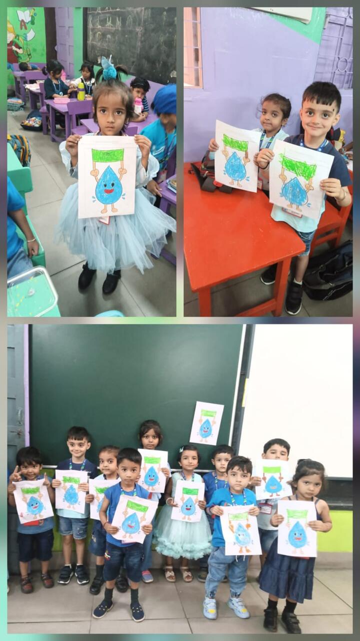 Students of Classes II to IV showcased their creativity through poster colouring activities based on environmental themes.