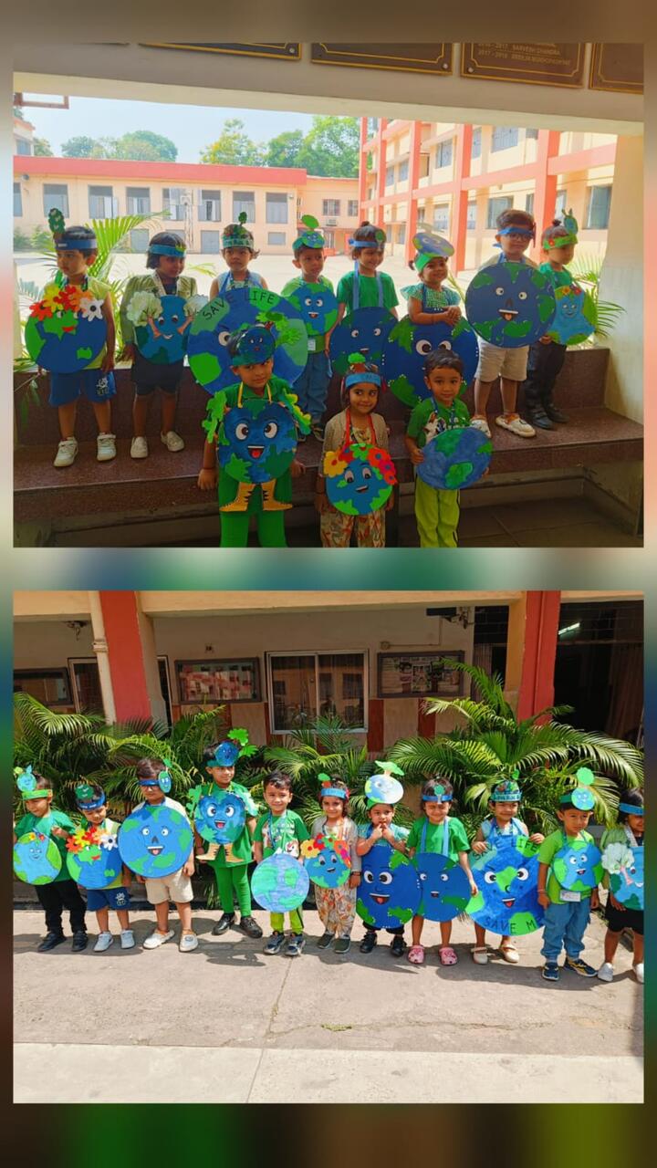 The Nursery students added charm to the celebration by wearing green-coloured T-shirts and dressing up as the Earth, beautifully conveying the message of loving and protecting our planet.